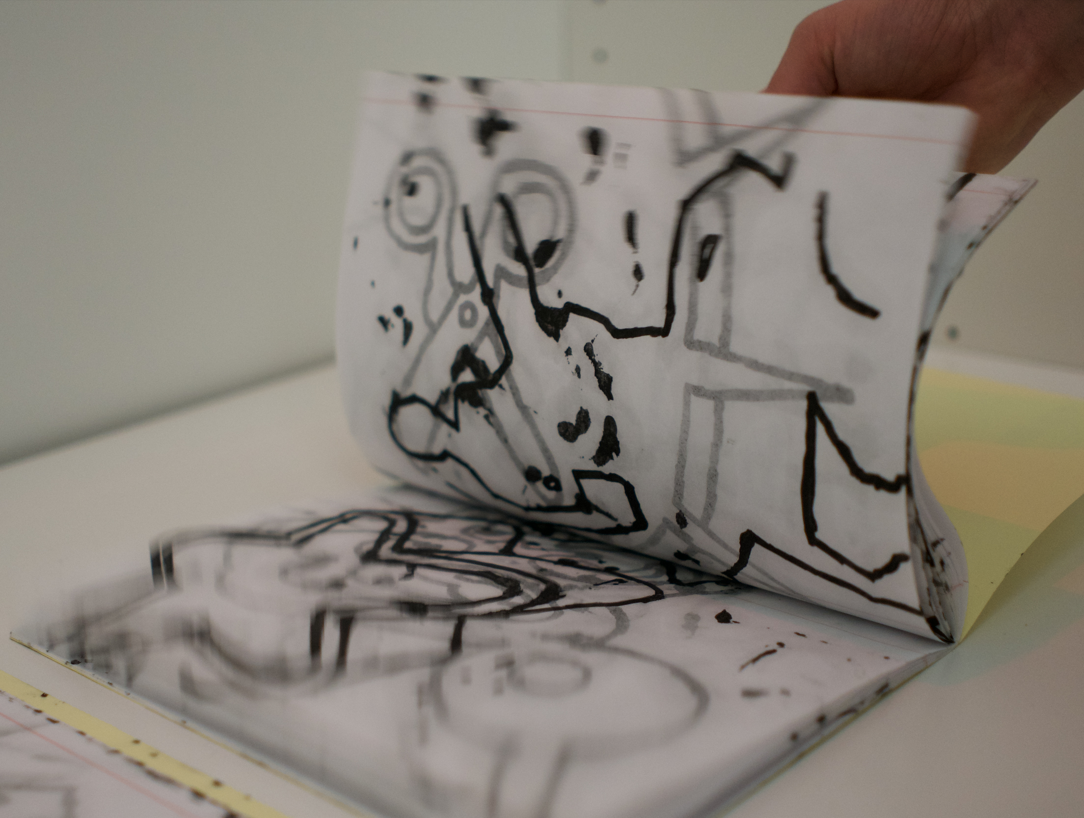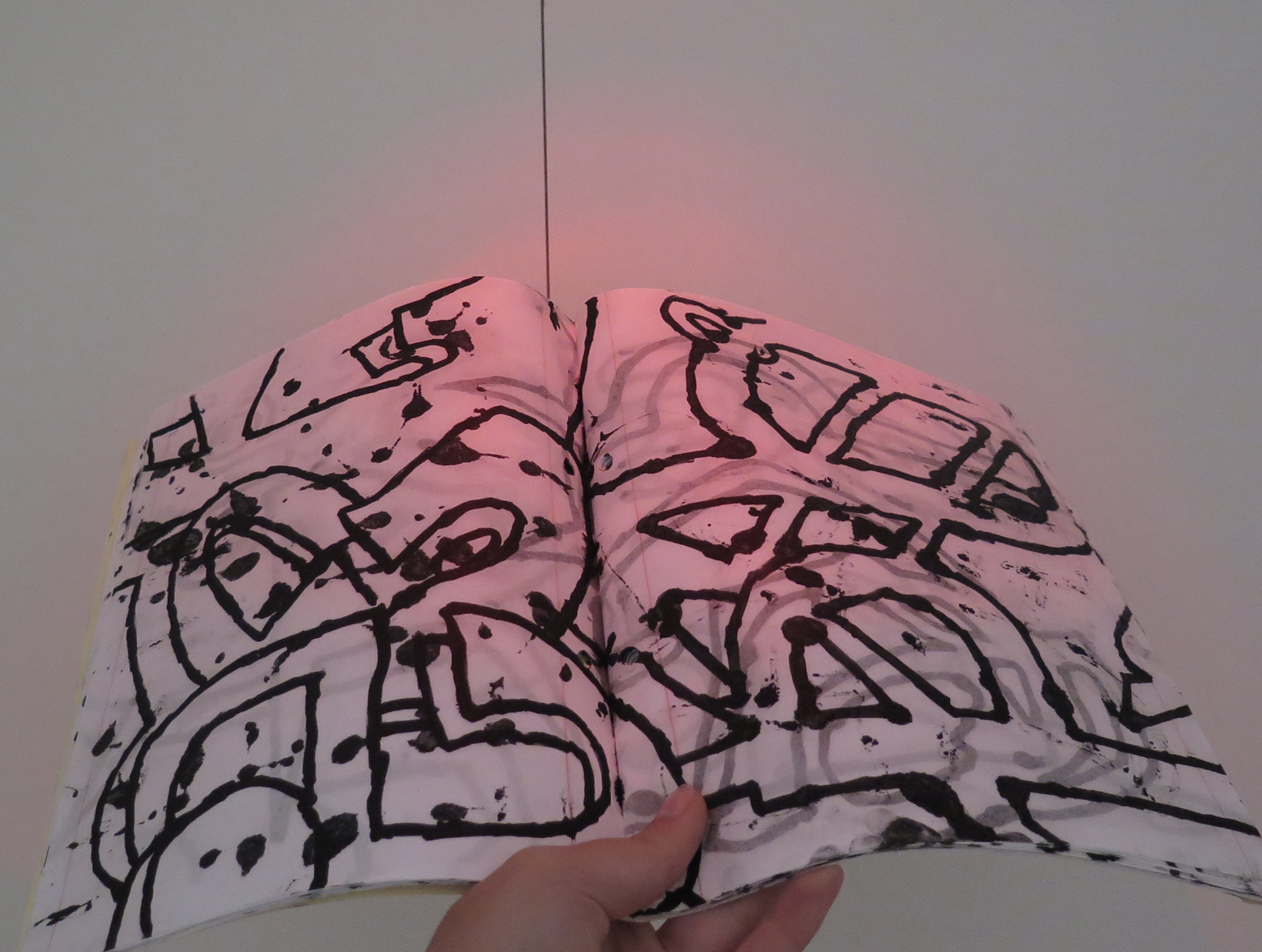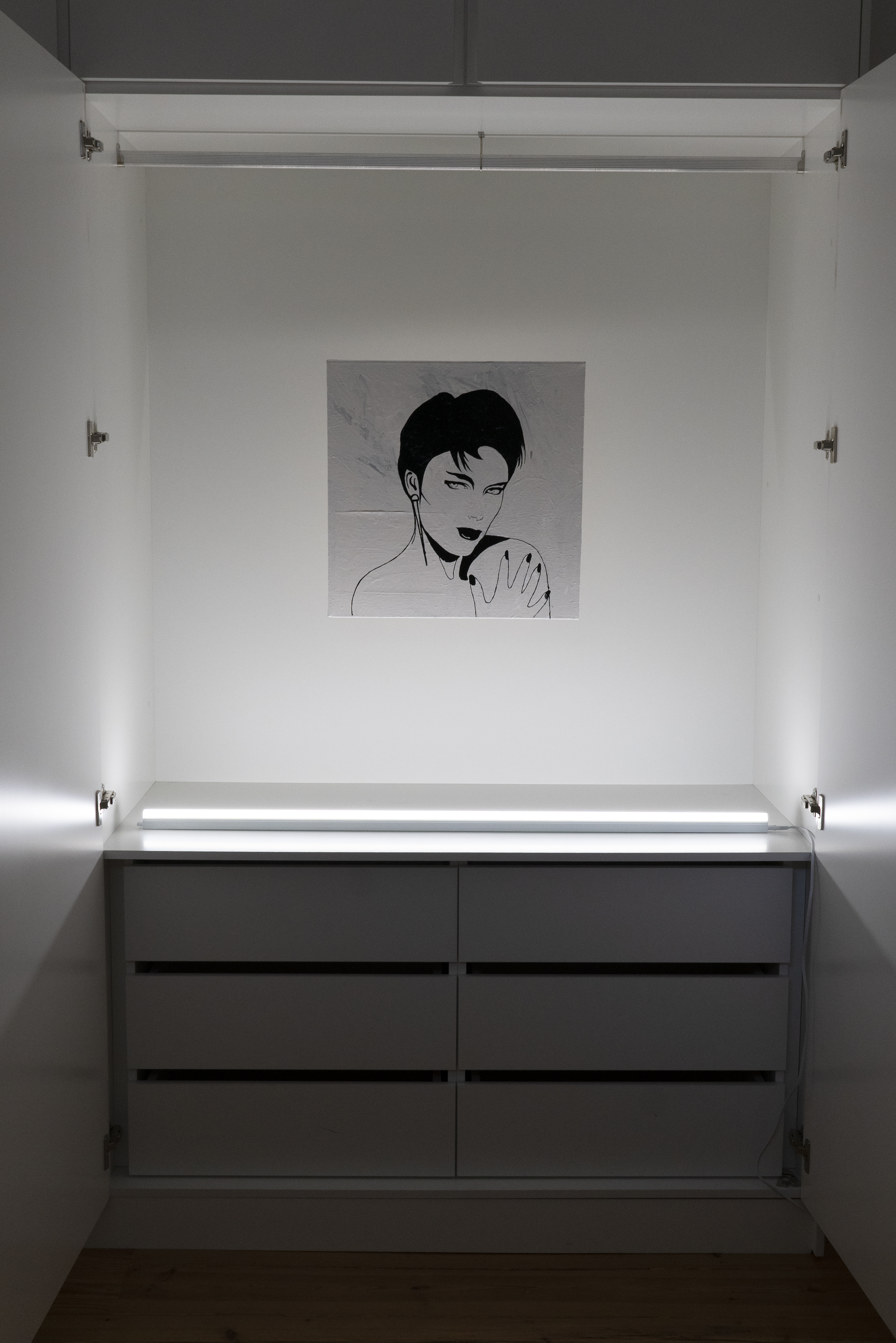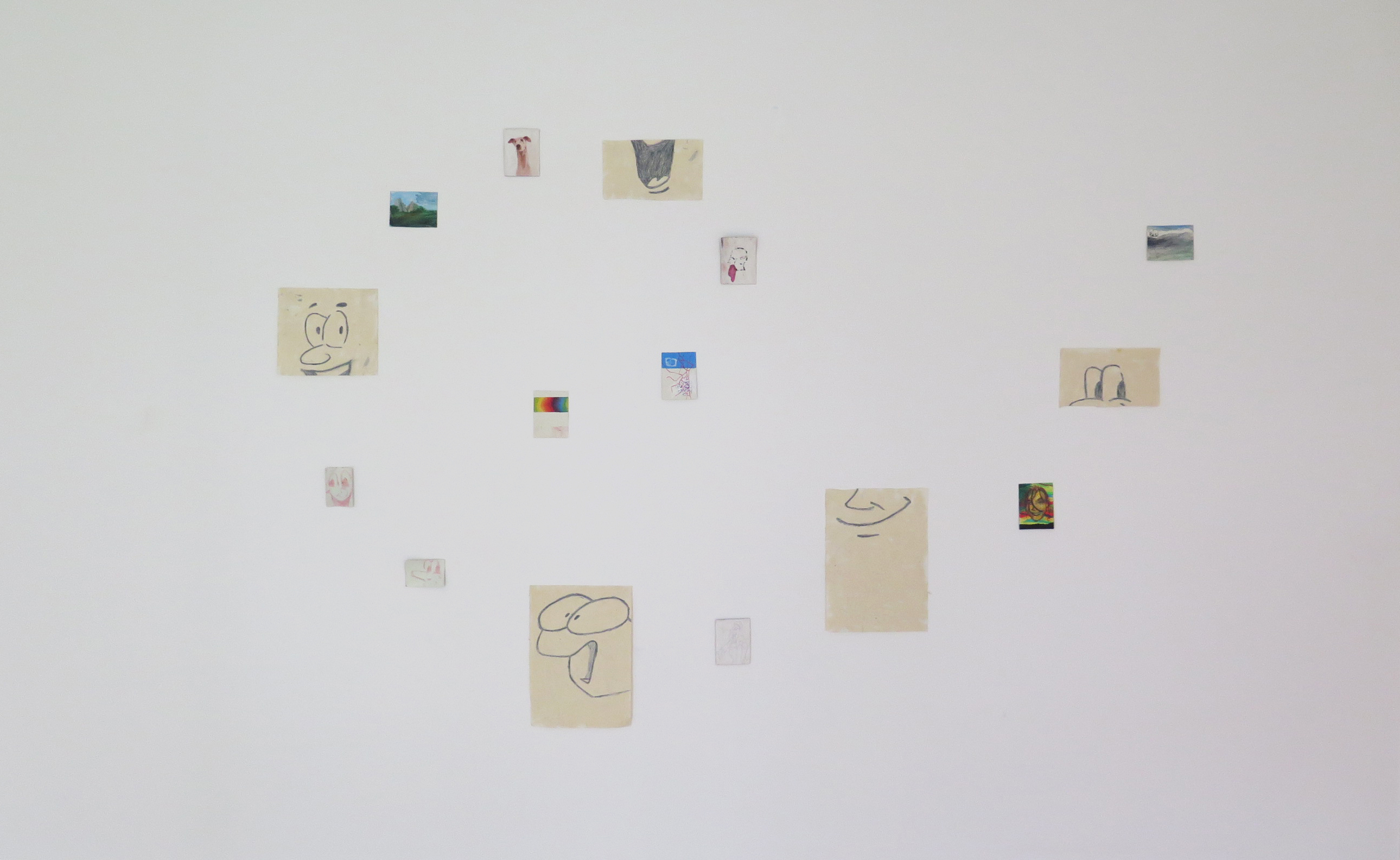 View of the installation with Mão-Mulher, 2020. Enamel and collage on canvas, 60 x 60 cm.
